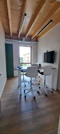 - Premier étage : 1 espace de coworking avec 3 postes en open-space, 3 bureaux privatifs (ou à partager) et 2 salles de réunion.